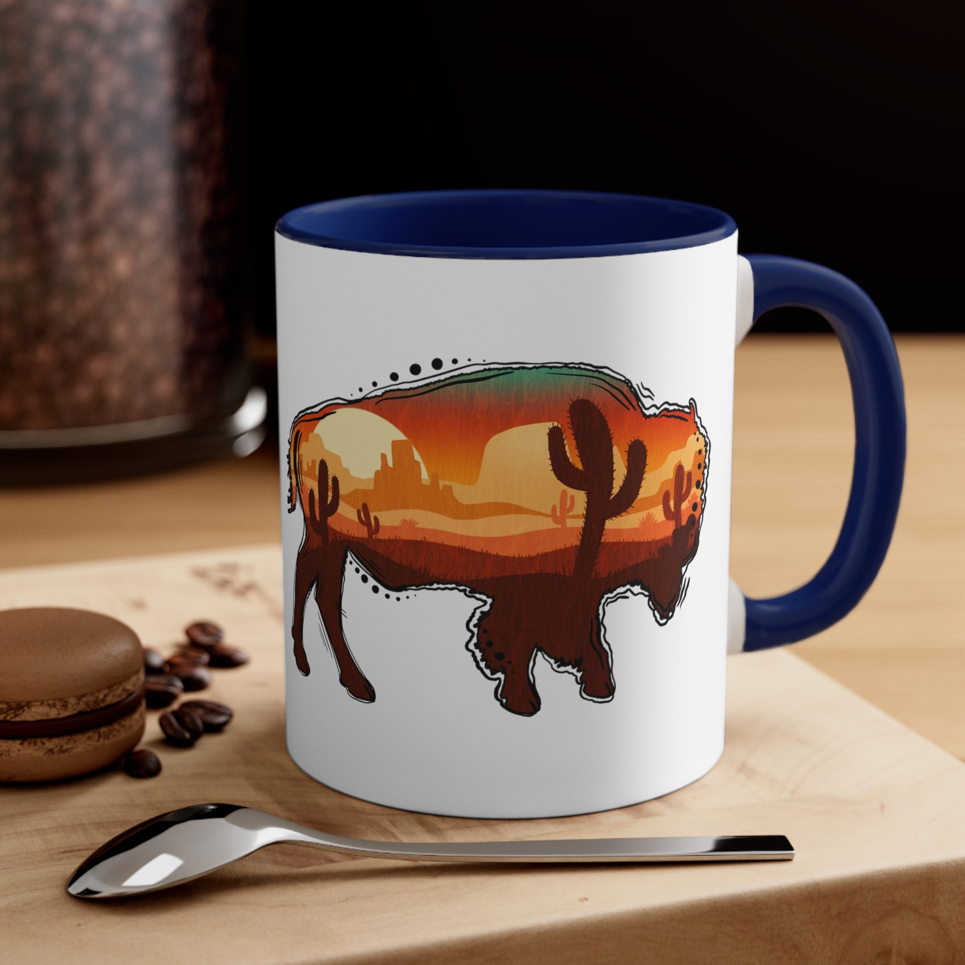 Wild West Bison & American Flag Mug, 11oz